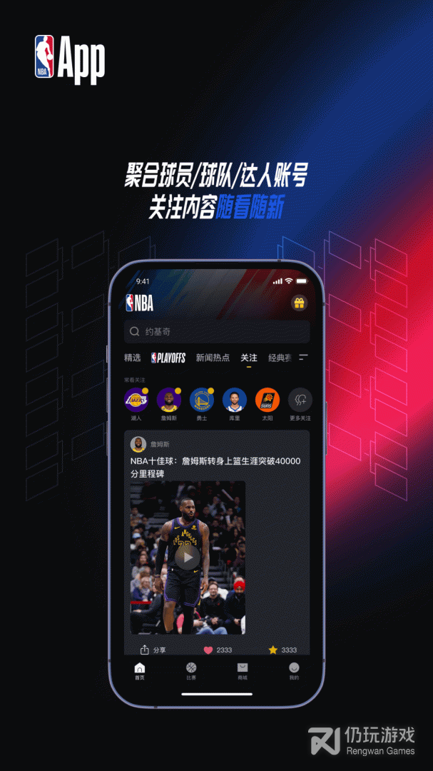 NBA是由美国职业篮球联赛官方推出的赛事资讯平台,用户可以通过这里来了解NBA的详细赛程信息,了解NBA球员们的最新动态,查看每一场比赛的详细数据,观看最新的比赛图文直播。全面了解联盟内的所有动态,一键支持自己喜欢的球员和明星。