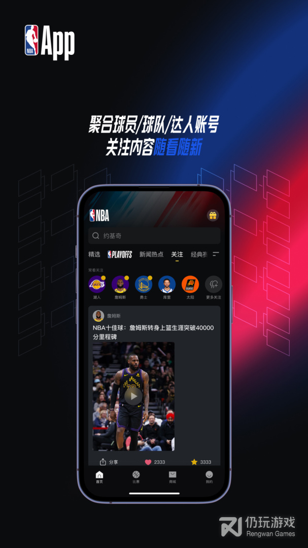 最个性的球迷主队关注选择,打造专属于你的NBA APP。