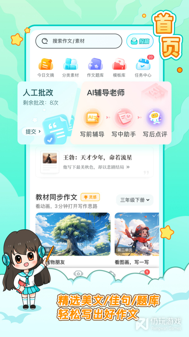 笔神作文是可以有效提高中小学生写作能力的软件。这里有着非常丰富的写作素材库,众多知名的文学作品,让你在写作的时候可以进行很好的借鉴和引用,帮助你不断提高自己的写作水平。