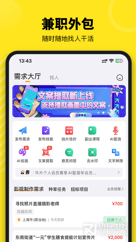 牛片是众多影视方面专业人才汇聚的平台,这里不仅拥有多种专业的视频剪辑功能,还可以进行拍片约单。你可以在这里发布各种制作邀约,也可以在这里找到适合自己的兼职订单,是众多专业人士都信赖的软件。