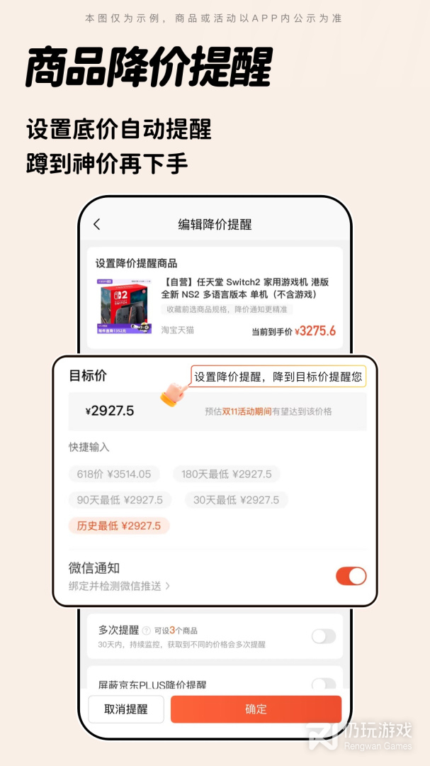 还在日常浏览购物车,发现价格还没有到达期望价格?查询商品历史价格,降价早知道,设置心仪到手价。无需刻意关注,降价推送到你的面前!