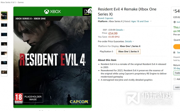 但从英国亚马逊公布的信息来看,情况并非如此,因为他们已经公布了生化危机4重制版Xbox One版的信息。