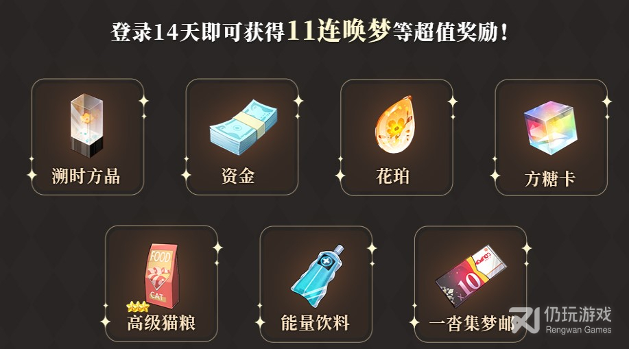 累计登录14天还可以获得11连唤梦等超值奖励。奖励内含一沓集梦邮,也就是10张集梦邮。