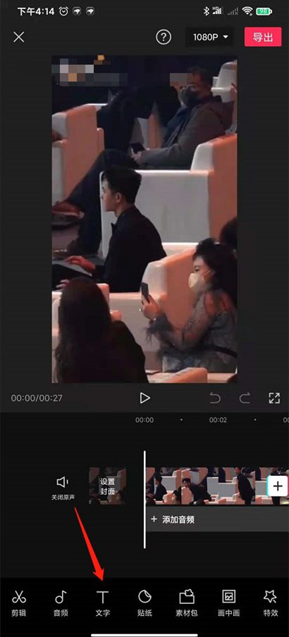 3.在文字页面,点击识别字幕,即可给视频添加字幕。