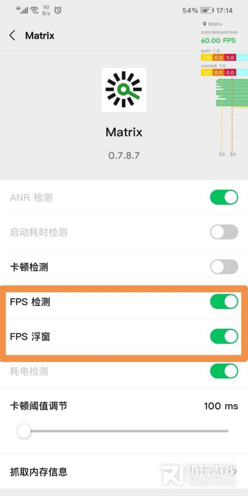 5.打开FPS检测和FPS浮窗。即可实时查看微信FPS。