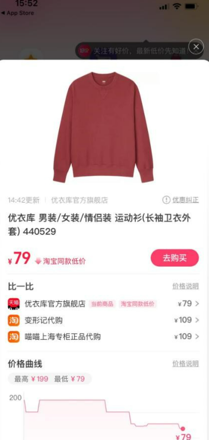 3.点击比价查价,即可查看价格曲线图。