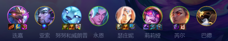 无转职(4重骑6幻境):迭嘉、亚索、巴德、努努、芮尔、永恩、莉莉娅、塞庄妮
