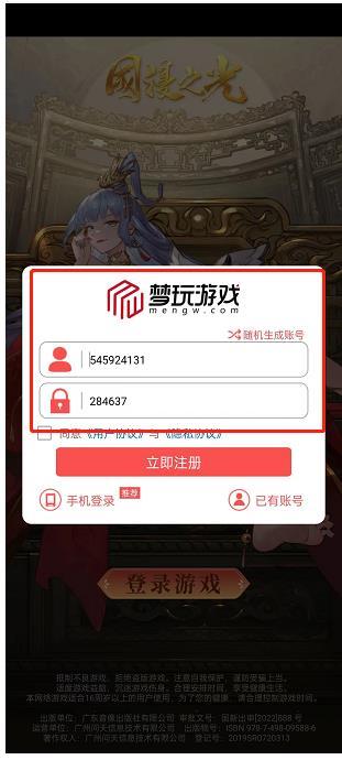 二、如果您登录梦玩游戏,选择的是随机生成账号登录,那么建议你截图记录一下账号密码。